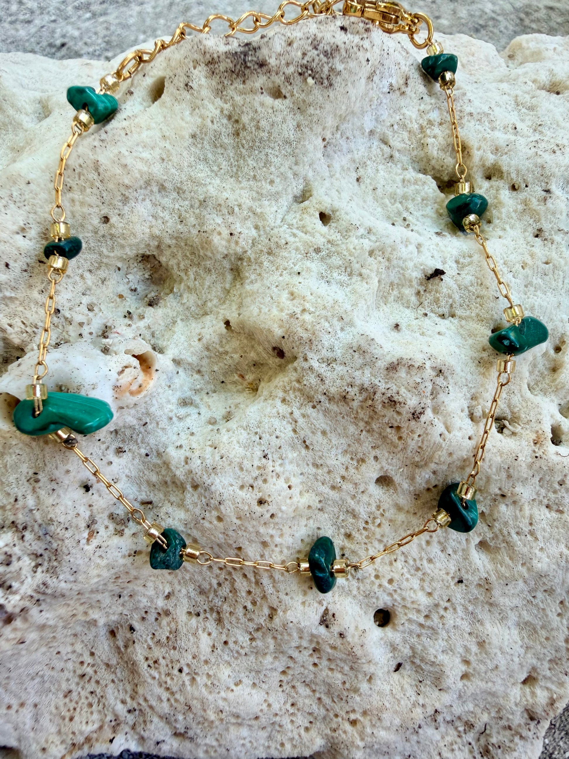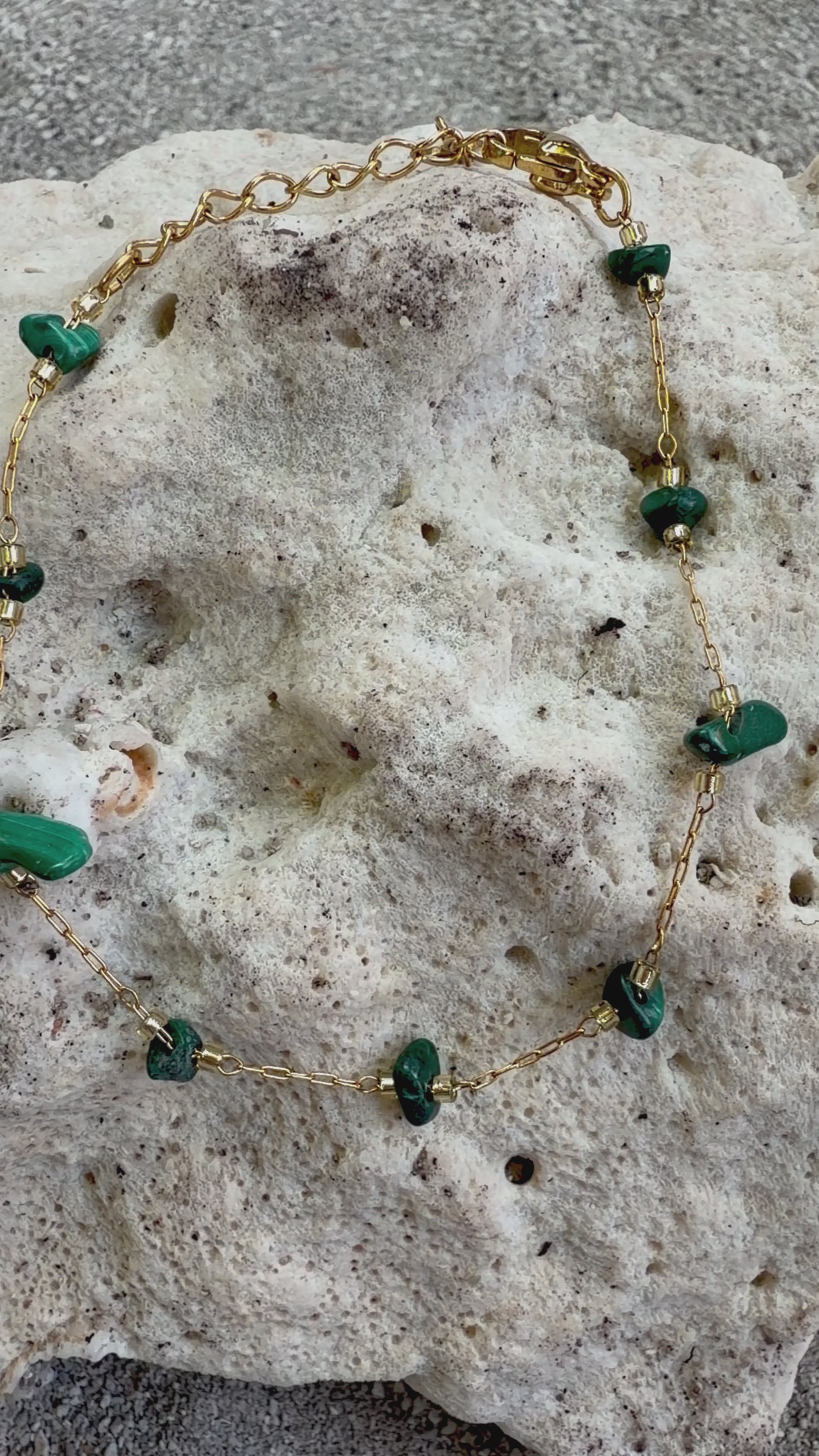 Bracelet en acier, inoxydable, doré, réglable, pierre verte