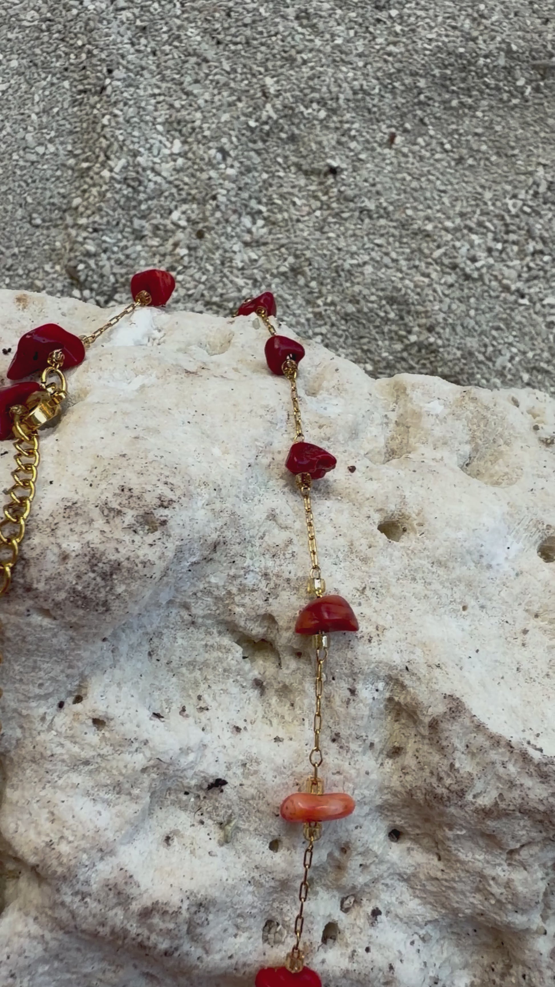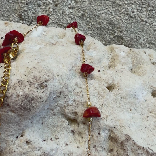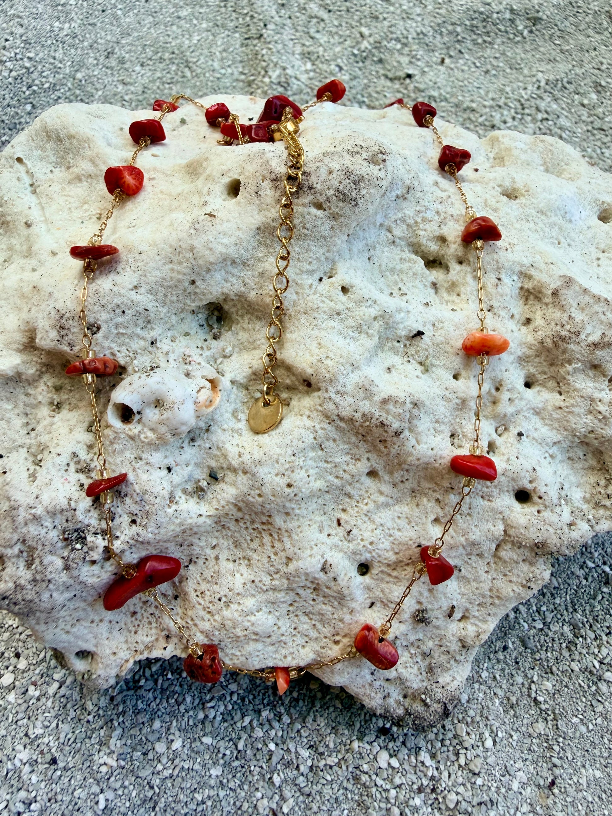 Collier acier, inoxydable, doré avec pierre corail