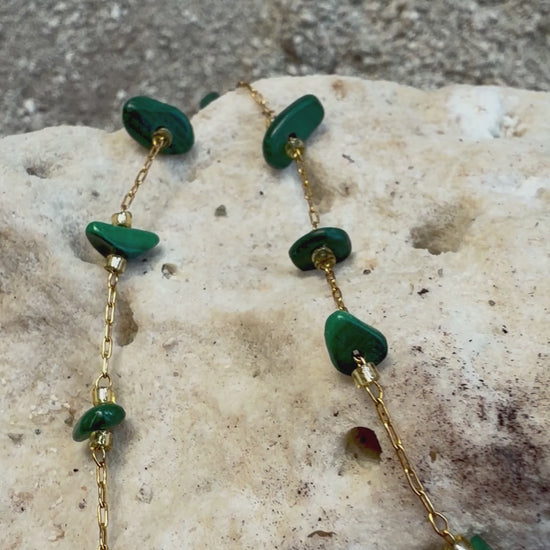 Collier en acier, inoxydable, doré et turquoise