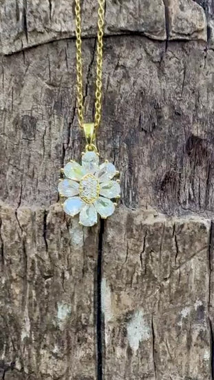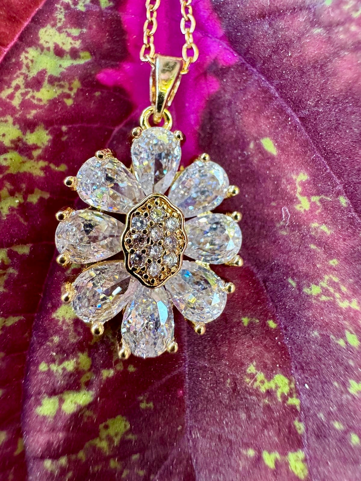 Collier fleurs, oxyde de zirconium, acier, inoxydable, doré, réglable