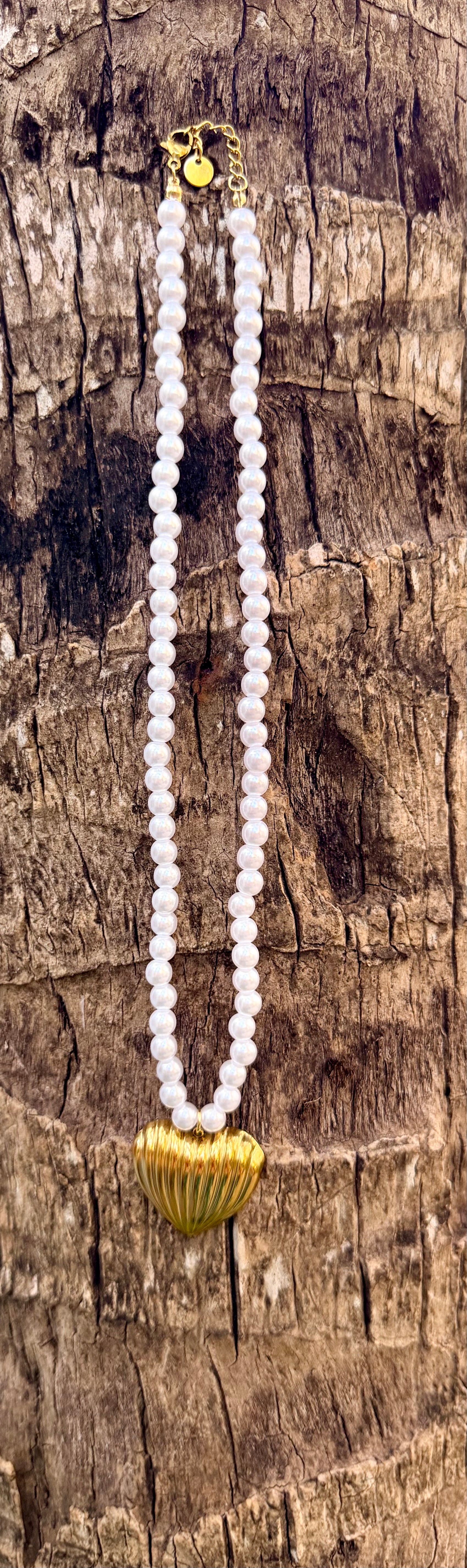 Collier, perles et acier, inoxydable, doré, réglaBle